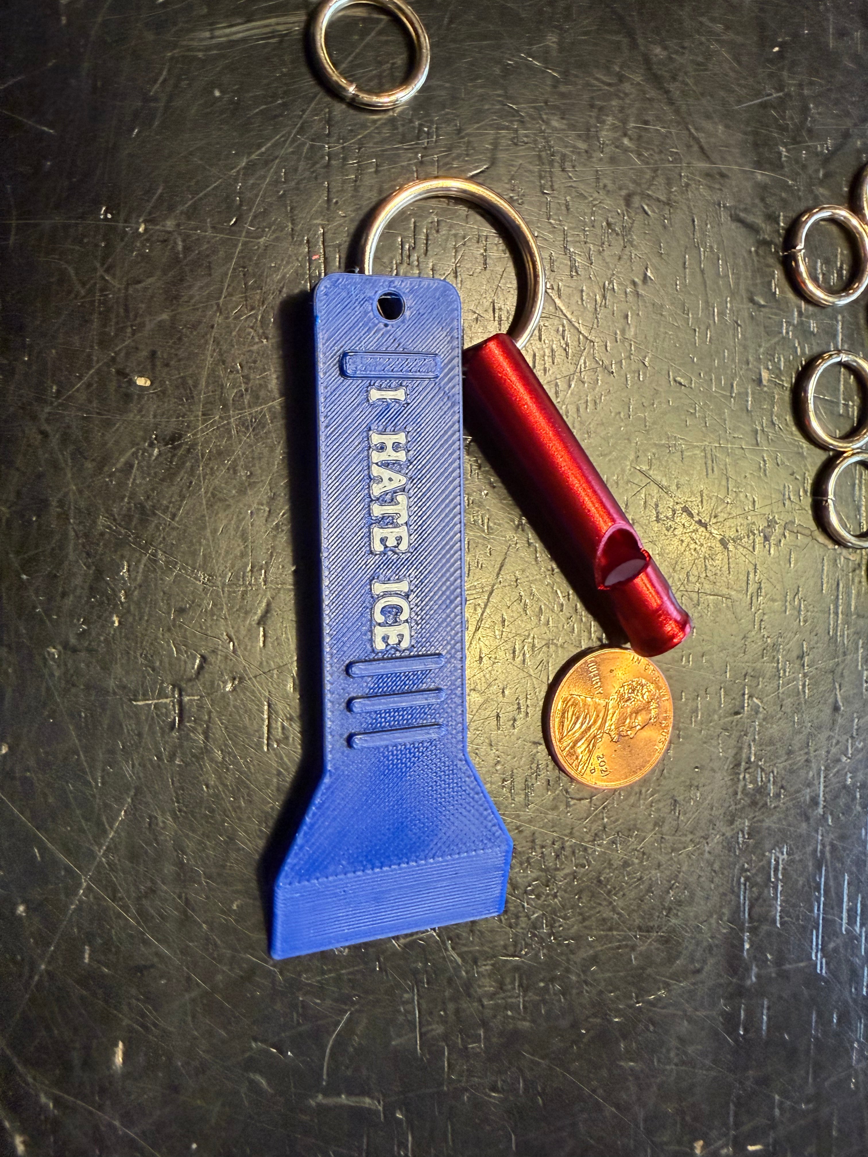 New! Mini ice scraper shaped keychain with whistle (surprise color).
